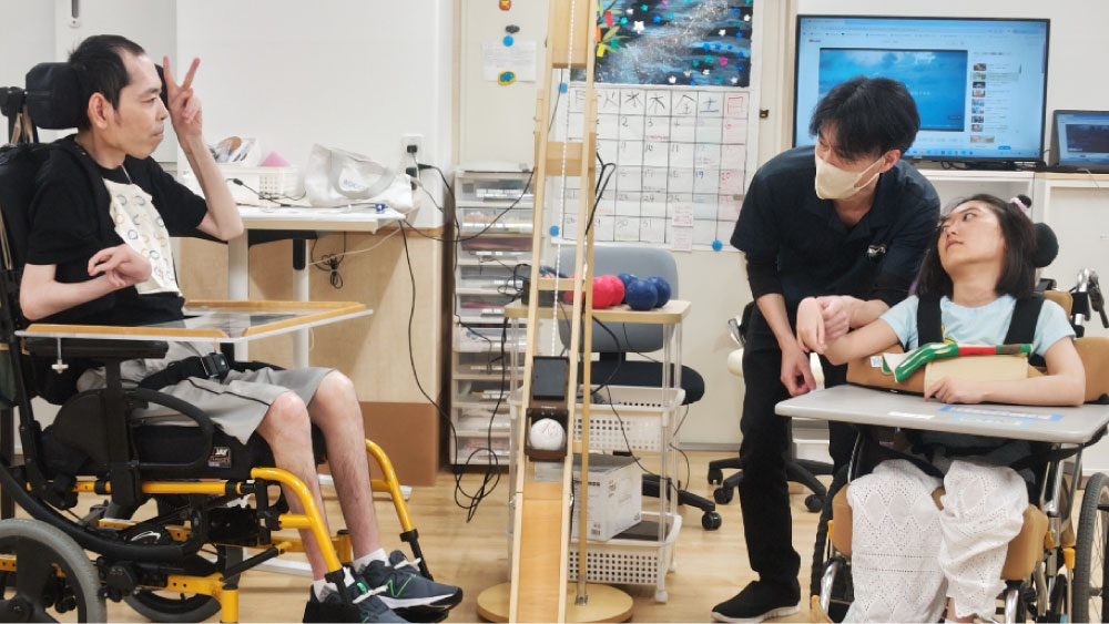 また、ICT(視線入力装置)を活用した支援にも力を入れ、手足に不自由がある方でも、生活の幅を広げ、更に生活の質を向上できるよう、支援を行っています。