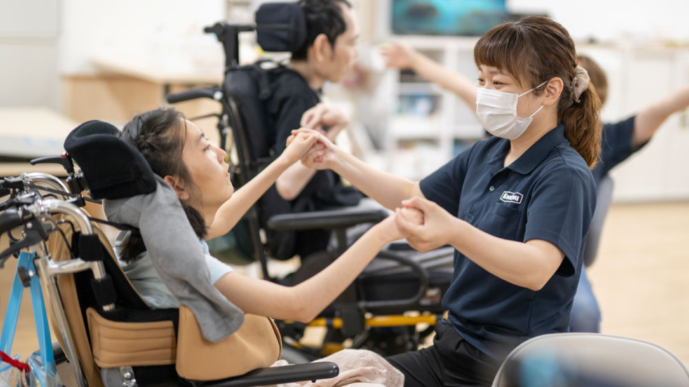 和音は重症心身障害者や医療的ケアを必要とする方が利用する「重心フロア」と、知的・発達障害のある方たちが作業する「知的発達障害フロア」に分かれており、ひとつの施設内で異なる支援を提供しています。